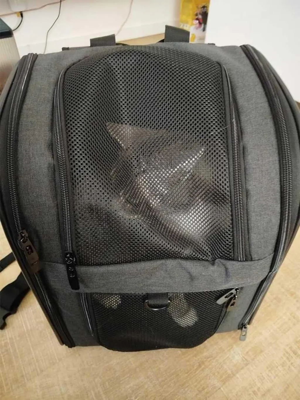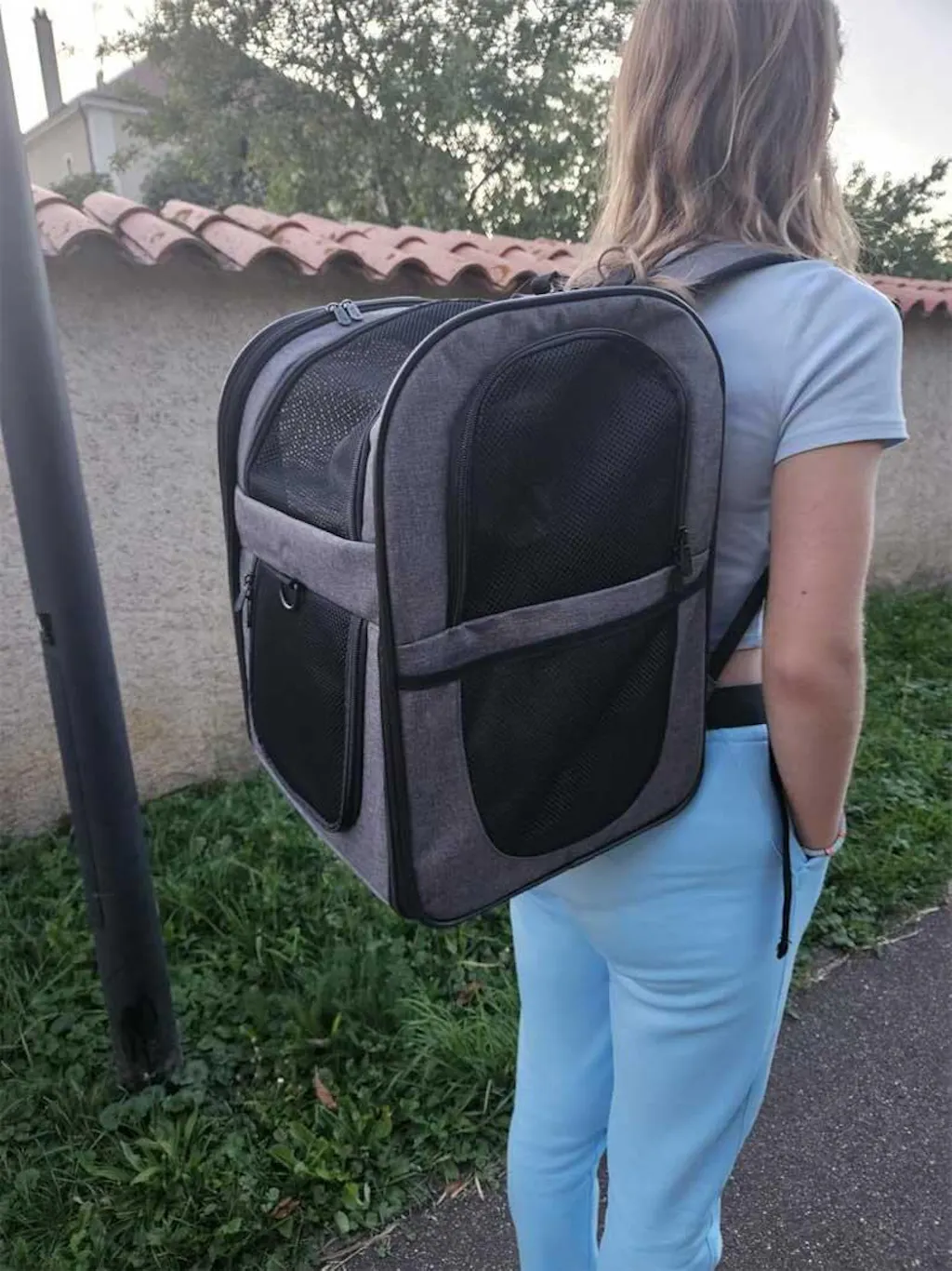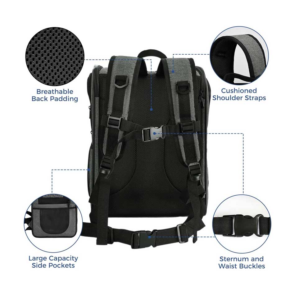 | Veiligheid | Ingebouwde veiligheidsriem, krasbestendige meshpanelen, dubbele ritsen |