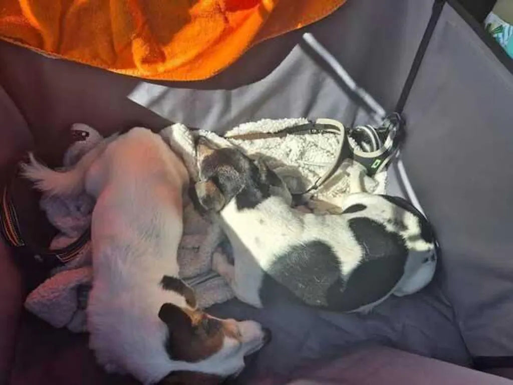 | Bevestiging en veiligheid van de zitting | 4 riemen en een in lengte verstelbare veiligheidsgordel om de hond vast te zetten |