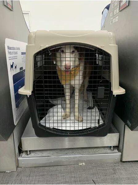 Het toegestane gewicht van een huisdier in het ruim is 75 kg met een kooi;