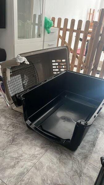 Zorg ervoor dat uw hond geleidelijk aan klaar is voor transport in de Flypet transportbox. Begin met het openen van de deur van de transportbox en zorg ervoor dat uw dier rustig in de box blijft. Controleer vervolgens of uw dier zich op zijn gemak voelt in de gesloten box.